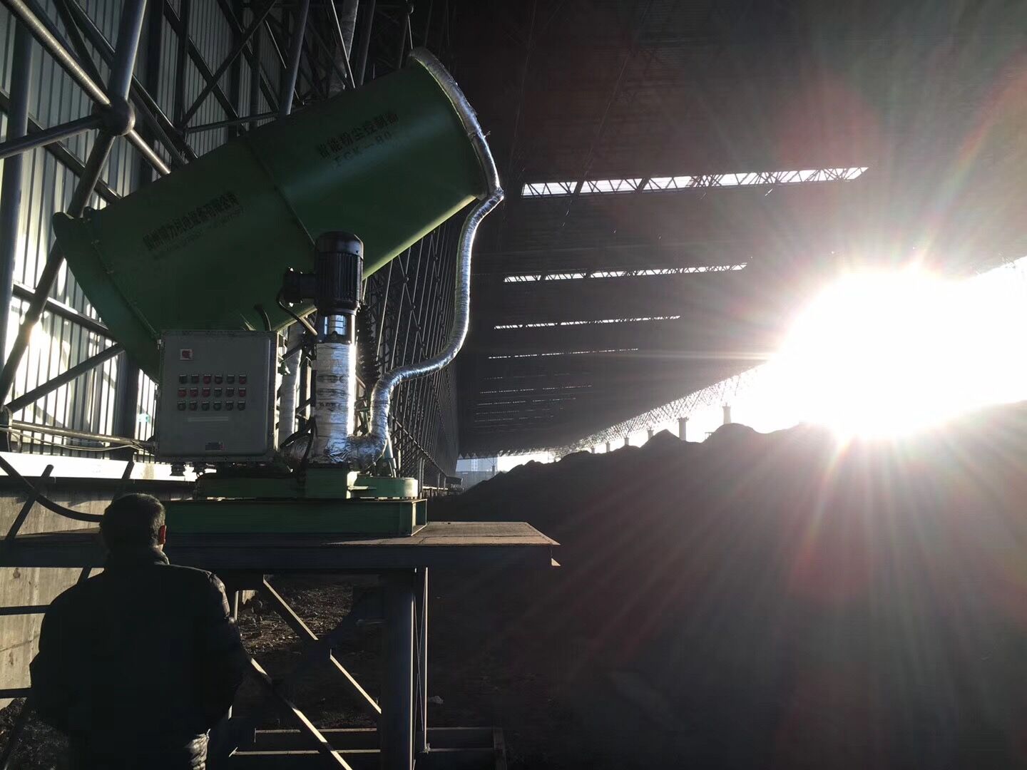 項(xiàng)目地位于山西省陽(yáng)泉市經(jīng)濟(jì)技術(shù)開(kāi)發(fā)區(qū)下五渡,陽(yáng)泉天成煤炭鐵路集運(yùn)有限公司儲(chǔ)煤棚,煤場(chǎng)有南北兩個(gè)貨場(chǎng)儲(chǔ)煤棚,南貨場(chǎng)儲(chǔ)煤棚使用8臺(tái)FCK-HB80防寒防爆型智能粉塵控制器和2臺(tái)BL/FCK-HB100防寒防爆型智能粉塵控制器全方位噴霧降塵除塵。北貨場(chǎng)儲(chǔ)煤棚使用12臺(tái)BL/FCK-HB50“博藝”牌防寒防爆型智能粉塵控制器全覆蓋噴霧抑塵。